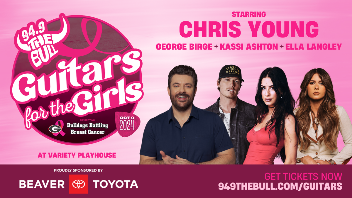 94.9 The Bull is bringing you Guitars For The Girls, proudly presented by Beaver Toyota of Cumming, featuring Chris Young, George Birge, Kassi Ashton and Ella Langley, live at the Variety Playhouse on Wednesday, October 9th. October is Breast Cancer Awareness Month, and we’re uniting for a special acoustic night to support Bulldogs Battling Breast Cancer. A portion of the ticket sales will go directly to this incredible organization, helping women in need through early detection and support.